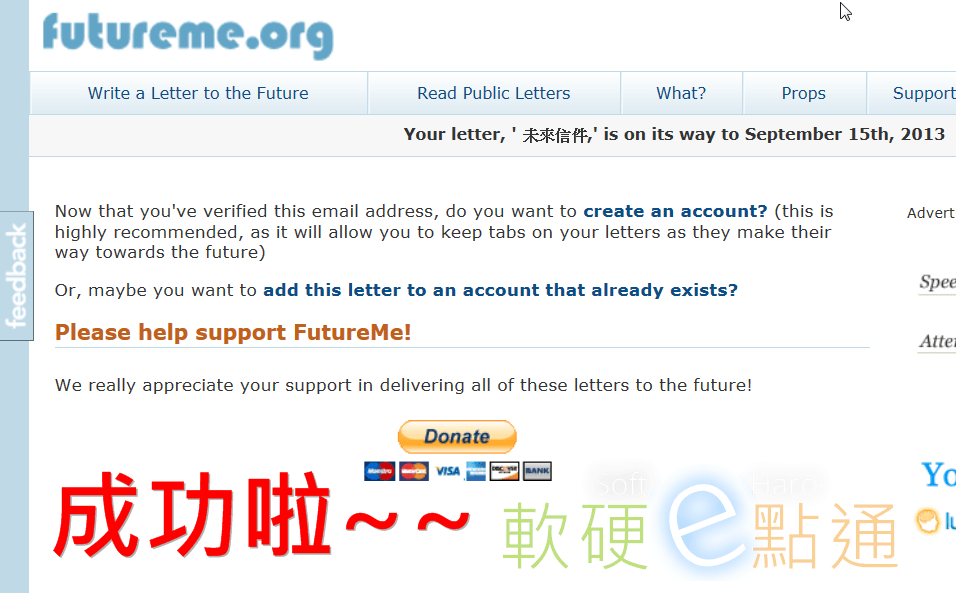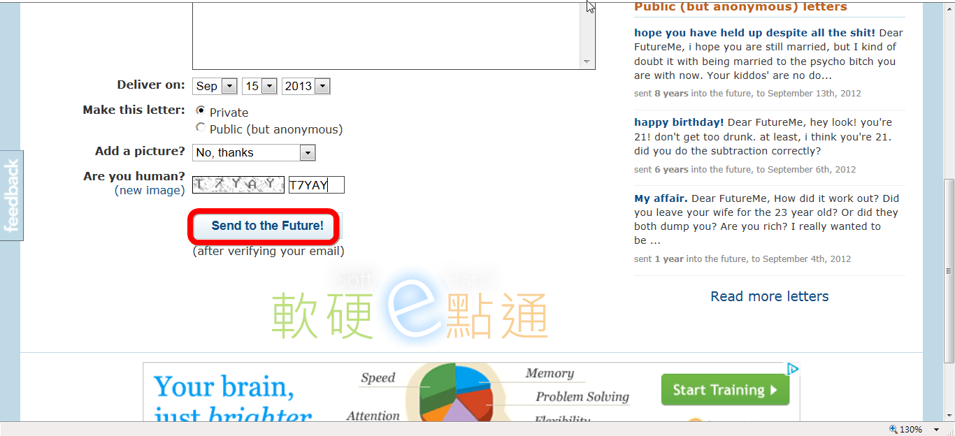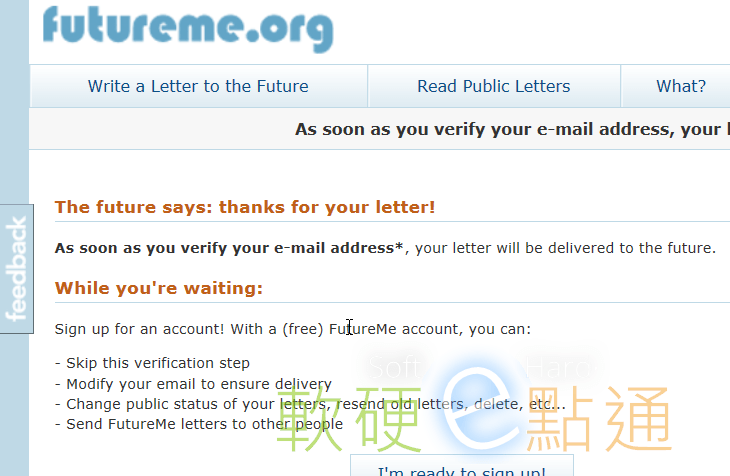 它能透過它們網站本身的服務,只要你在那網站先打好要寄給未來你之信件